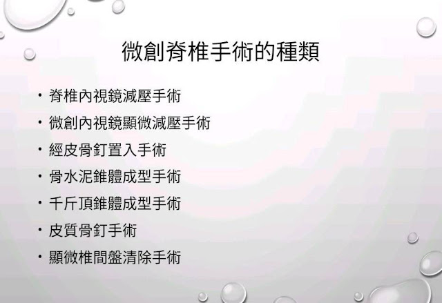 甚麼樣的脊椎手術適合用微創手術?程正鑫醫師強調,以往微創脊椎手術的適應症非常小,只有適用於單純的椎間盤破裂,但因為現在科技的發達,發展出非常多的適用於微創手術的器械,所以也大大增加了微創手術的適應症;以目前的醫療科技,幾乎所有的脊椎手術都可以被微創手術所取代,所以正如現今開腹的手術,以腹腔鏡為主流,再過十年微創脊椎手術,也會變成脊椎手術首選的手術方式。