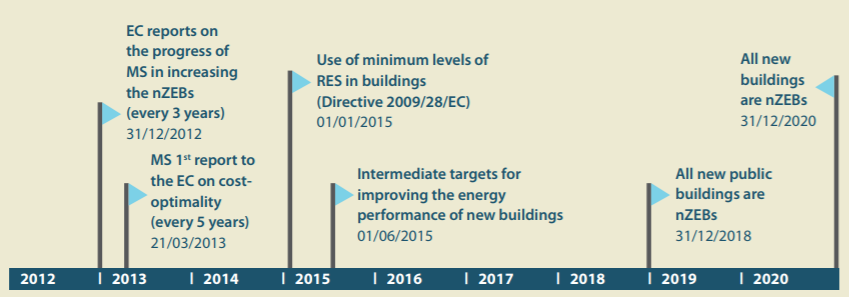 2002年,歐盟首度制訂EPBD,並導入「建築能源護照」(Energy Performance Certificate, EPC)制度,成為世界各國學習建築節能的立法典範,2010年修正時,再提出「近零耗能」建築(Nearly Zero-Energy Buildings, nZEB)的落實時程,要求2019年起所有新建公有建物達到近零耗能,2021年起,則是所有的新建物(包括民間)都要達到這個標準。