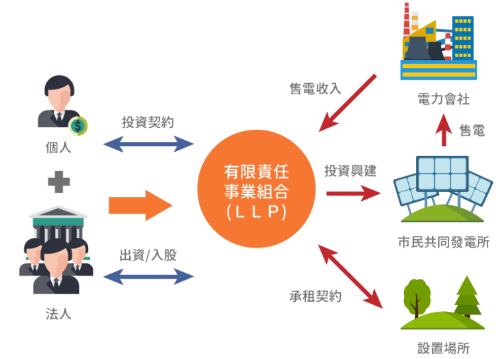 公民組織也促成再生能源的「分散化」與「公益化」,草根組織「生活俱樂部」(簡稱生協)1996年起關心反核運動與再生能源,1999年發起省電10%的綠色發電基金運動(即「北海道綠色基金」,Hokkaido Green Fund,下稱HKG),此基金加上公眾募款成立綠電合作社,補助住宅發電與建構市民風機。第一部風機2001年運轉,前10年初期階段的年賣電收入為3200萬日圓,每年分配給股東(出資50萬日元者)的「綠電利」有3萬6981日圓。爾後因躉售制度成立「北海道再生能源振興機構」,開放公眾與各地政府加盟,除回應綠電相關諮詢、進行場址潛力研究,也培育相關人才。