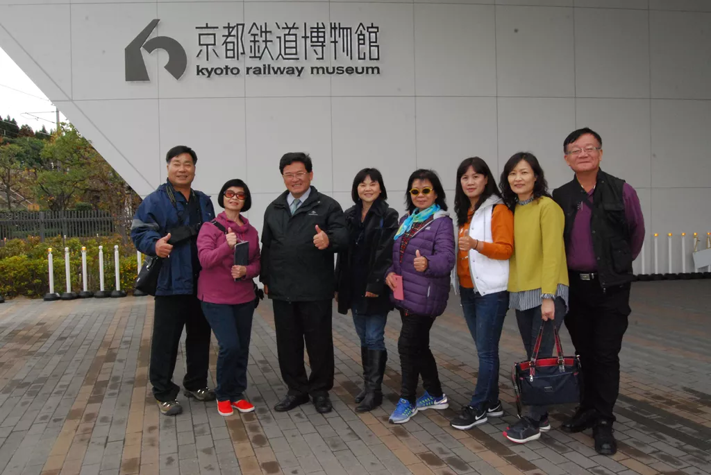 彰化市長邱建富(左5)在京都鐵道博物館聽取館長三浦英之(右)的簡報