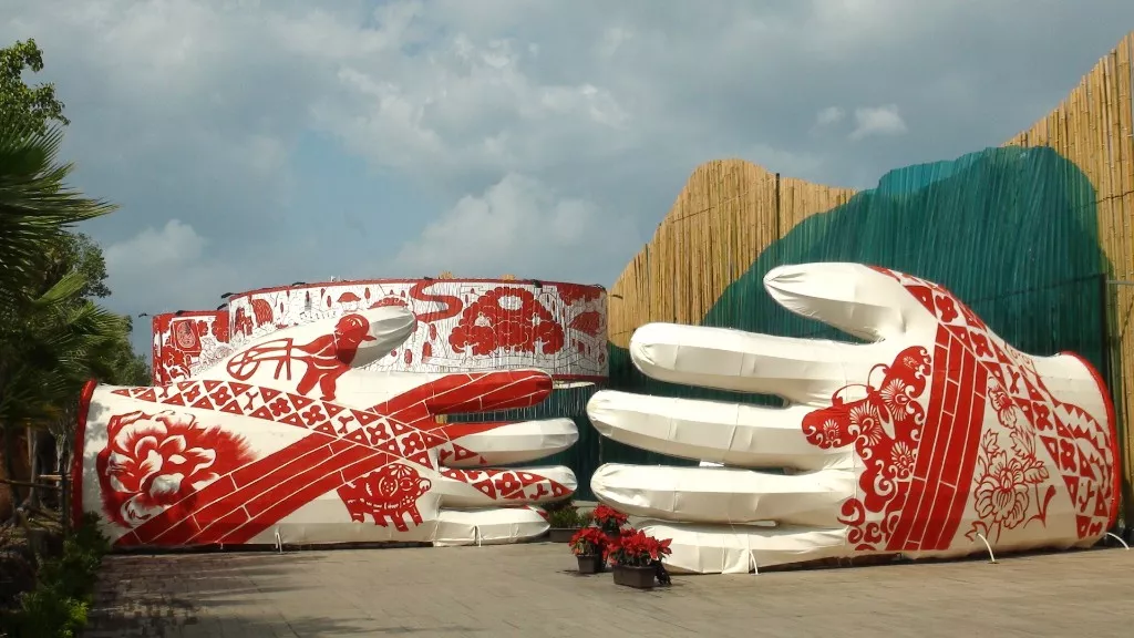 為娛嘉賓,各項的彩排在舞蹈舉手投足在汗水中進行!燈光音響攝影者捕捉最美的畫面!排隊等候領取提燈!服務人員不斷的提醒注意防曬及補充水分!