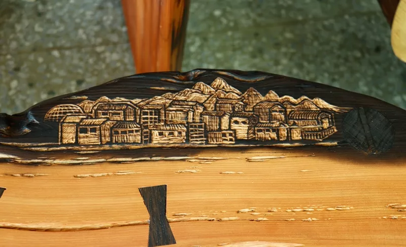 喜歡木頭工藝愛好大自然的他,退伍後就開始著手木工藝雕刻