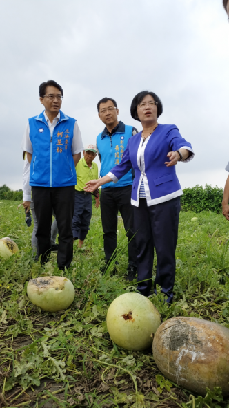 王惠美指出,縣府會儘速成立勘災小組,第一次勘災時是沒有達到補助標準,但這次現場狀況真的是非常嚴重,縣府會與幾個比較大面積種植西瓜的公所,用最快的速度做相關的勘災,協助農民,也拜託農委會及委員繼續關心瓜農,能夠獲得補助讓他們的生活能夠更好。