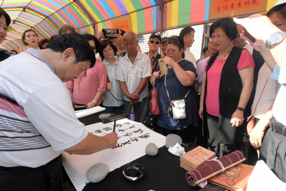 〔記者林明佑/彰化報導〕書法是歷史留下最好的珍貴文化,在鹿港廟宇中揮毫名作如雲,尋常家居也幾乎是家家書畫,可謂人文薈萃。由鹿港文教基金會與中國書法學會於29日下午在鹿港桂花巷藝術村舉辦「翰逸金秋-中國書法學會暨同好在鹿港」活動,邀請到北中南三地書法家一同聯誼,並由彰化縣長王惠美為活動開筆,書法家現場揮毫。王惠美說,感謝全國各書道同好蒞臨參與揮毫聯誼,集結北中南三地書法同好切磋書藝,成就一場書壇雅會。