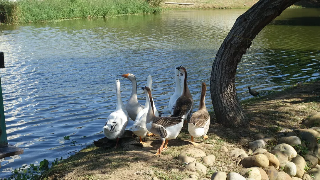 青塘園青塘橋的橋下與岸邊總是駐留著鴨鵝紅冠水雉