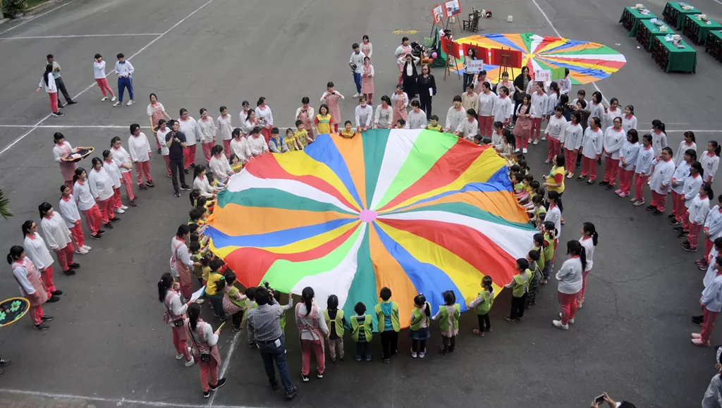 當小朋友順利地接住降落傘時,達德幼保科的大姊姊們便給予小朋友們一個好棒的鼓勵抱抱,現場呈現一股溫暖的正向氛圍。並於活動結束後,將內容剪輯成影片,放置社群網站中,讓更多人一起來關注這個議題,傾聽幼兒的聲音,尊重幼兒的人權。