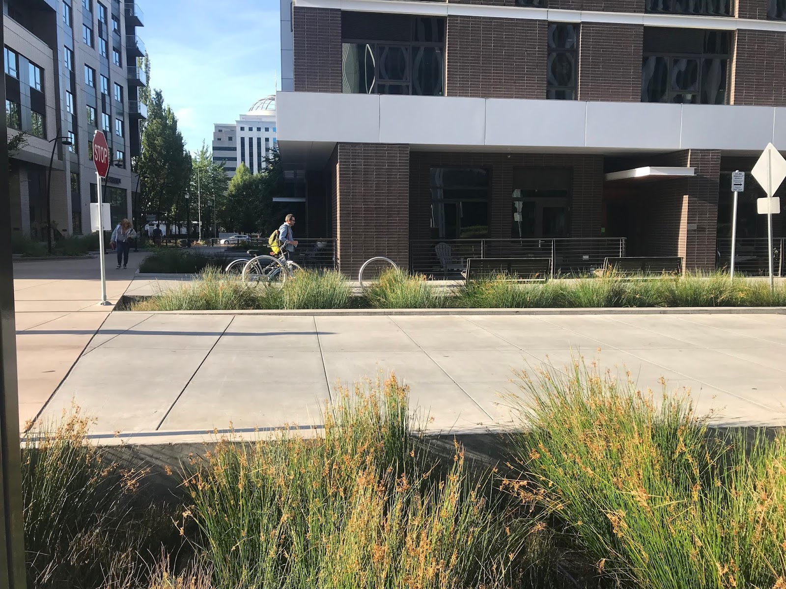 在仔細設計下,這座公園成為波特蘭第一個用現地生態自然處理雨水,並調節當地生態系的案例。周圍設置的雨水收集系統,能夠將水導入公園內,再透過土壤層、生態池的達到自然淨化,形成健康的水循環系統。公園內多處設置如何用自然解決方案Natural-based solutions, NBS),達到生態與社會福祉雙贏效果,兼具濃厚的環境教育意義。而筆者在這裡看到許多孩子盯著水池的生物,許多大人在一旁休憩,確實這種的靜謐及祥和,真的會想讓人多駐足幾分。