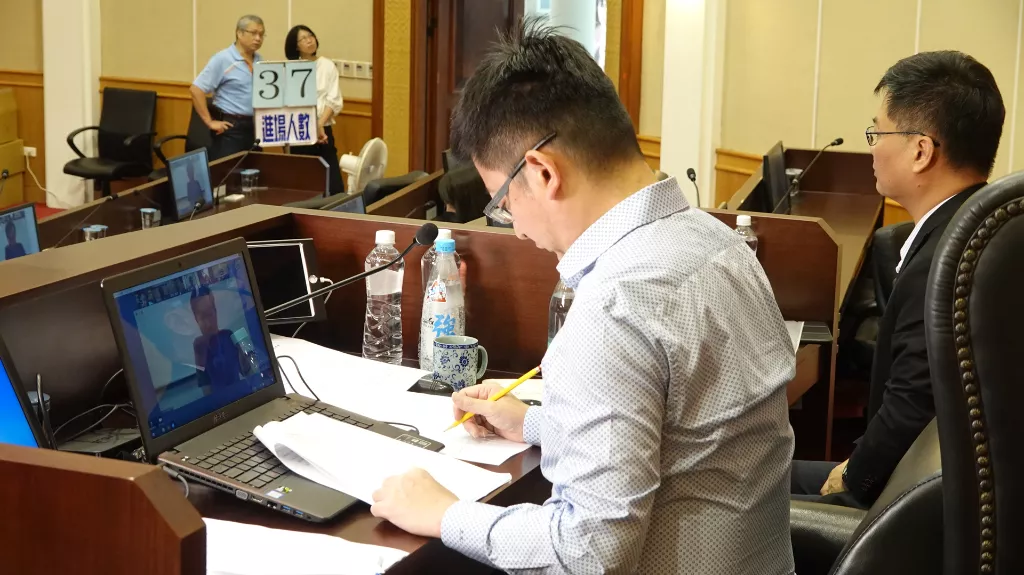 謝典林說,日前議會同仁已將視訊設備架設完成,也將陸續到每位議員服務處協助裝設及說明操作方式,為疫情未來的可能發展做好準備,備戰未來可能停止在會內開會狀態。