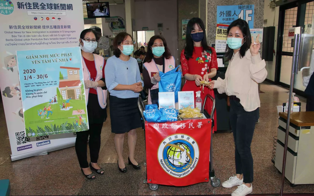 服務站站主任蘇慧雯率2位新住民二代親善大使許卉真及利佳玲等人,以母語、中文、英文等多國語言,向前來服務站洽公的新住民、外國學生,還有來自世界各地的朋友宣導臺灣的防疫作為,及應對冠狀病毒疫情的洗手觀念、發放洗手皂。同時也向現場各國朋友宣傳移民署的「逾期外來人口自行到案專案」,讓防疫工作更加精進,減少破口,期間自即日起至6月30日。