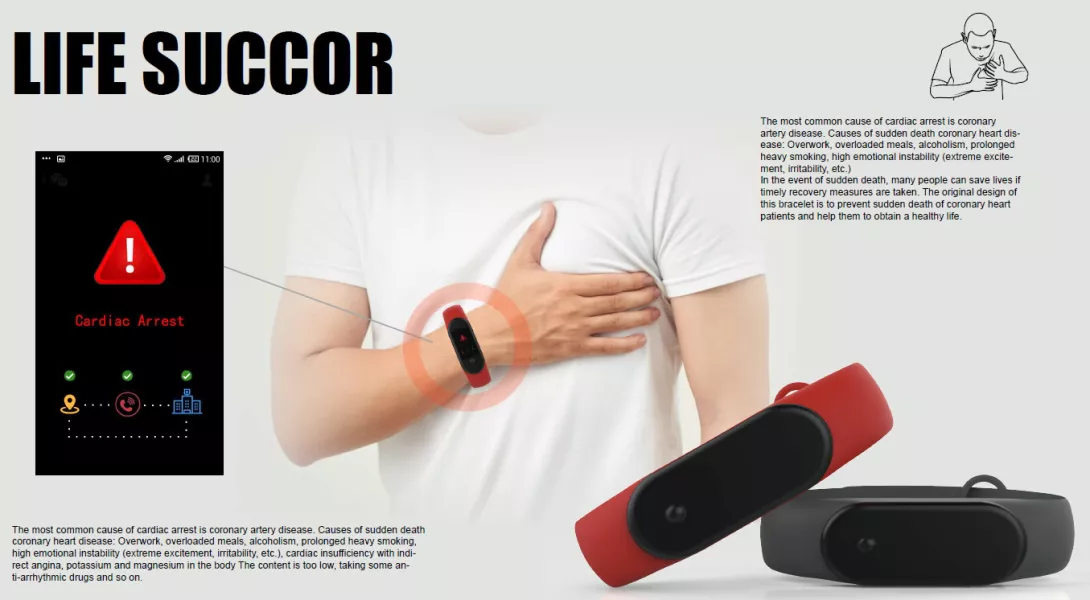 獲得優秀獎作品「LIFE SUCCOR」,是由文創系林惜茹,蘇安愉,雷蕾同學所共同創作,由於新聞常出現猝死案件,大多數都是因為心臟出現了問題,在黃金搶救時間前,若是有積極的搶救,就有機會避免悲劇發生。因此同學設計出一款戴在手上的心律偵測器,可隨時注意心律狀況,並在病況發生前警告病患,並在發生後,即時通知最近的醫院與路人,對於高風險族群實為一大福音。