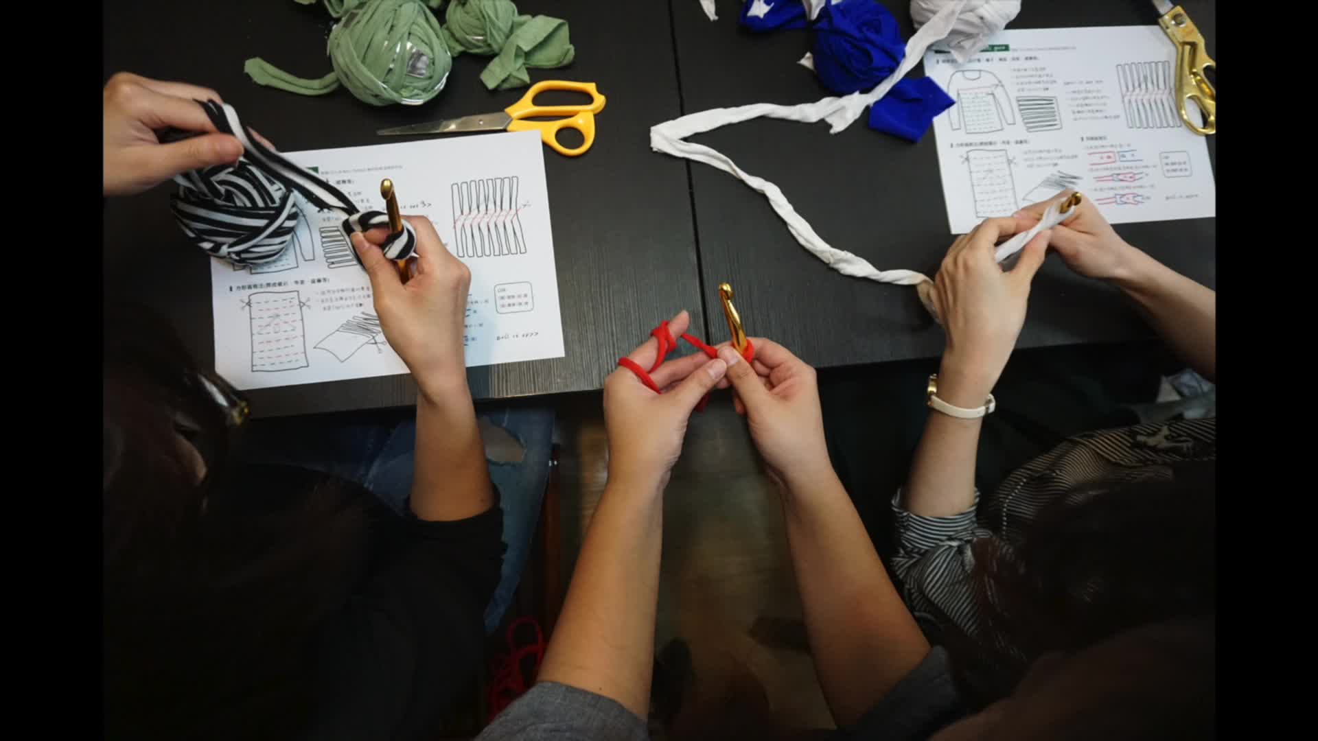 學員來到課堂上我們就會讓他先跟自己的衣服道別,然後會先讓他們看一下材質,衣服裡面會有衣標和洗標。然後會讓他們說一下為什麼今天會帶這件衣服來拆解,那他們各自講了這些原因和理由之後,我們才會真的開始動刀下去剪它,那在他拆解的時候他就會認識版型。我們就是覺得這樣的方式是很扎實的,每個人在邊拆解和編織的過程,他們等於就是拆了一件衣服,再重新再把它們織回一間他們需要的東西,在這個過程裡面他們就能更理解到織品對於自己的關聯性是什麼。
