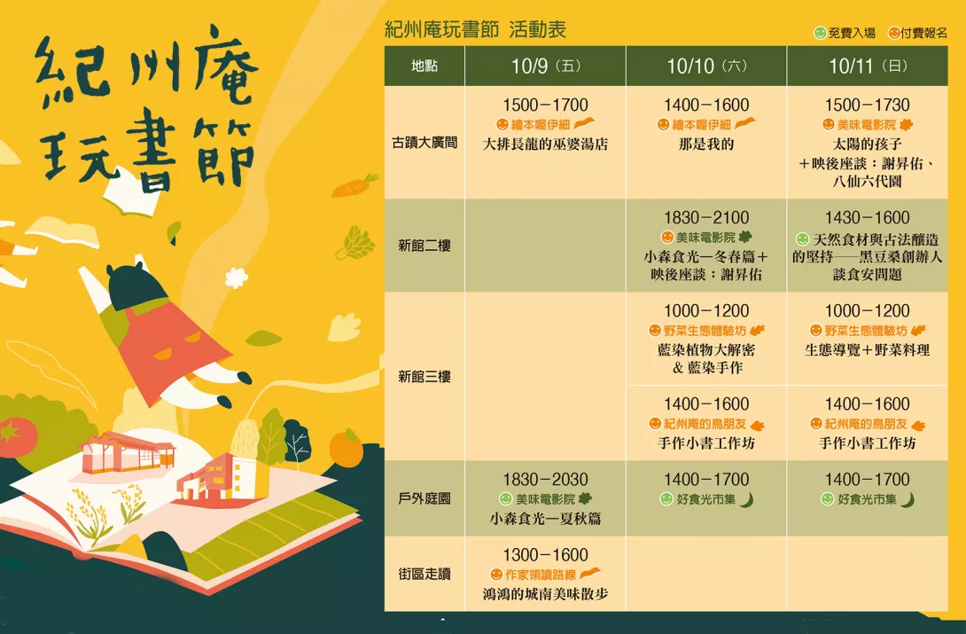 國慶連假何處去? 紀州庵玩書節13場熱鬧展開