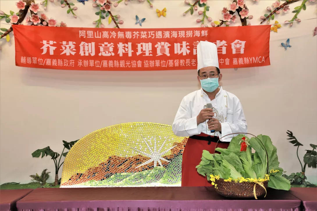 嘉義縣觀光協會結合基督教長老教會、YMCA等團體,於12月23日上午11點。假,以「阿里山高冷無毒芥菜巧遇濱海現撈海鮮」為主題。舉辦第十二屆芥菜創意料理發表八道芥菜結合濱海現撈海鮮創意料理。嘉義縣文化觀光局局長許有仁、嘉義縣觀光協會理事長蕭道隆等共同代言,並以美食推動文化觀光美食。【PeoPo公民新聞記者莊文祥中埔鄉報導】