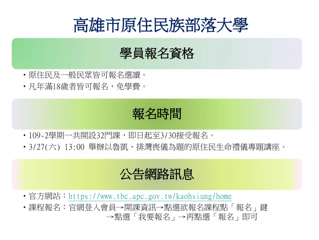 高雄市原住民事務委員會政策宣導說明如影片敘述,摘要圖卡如上: