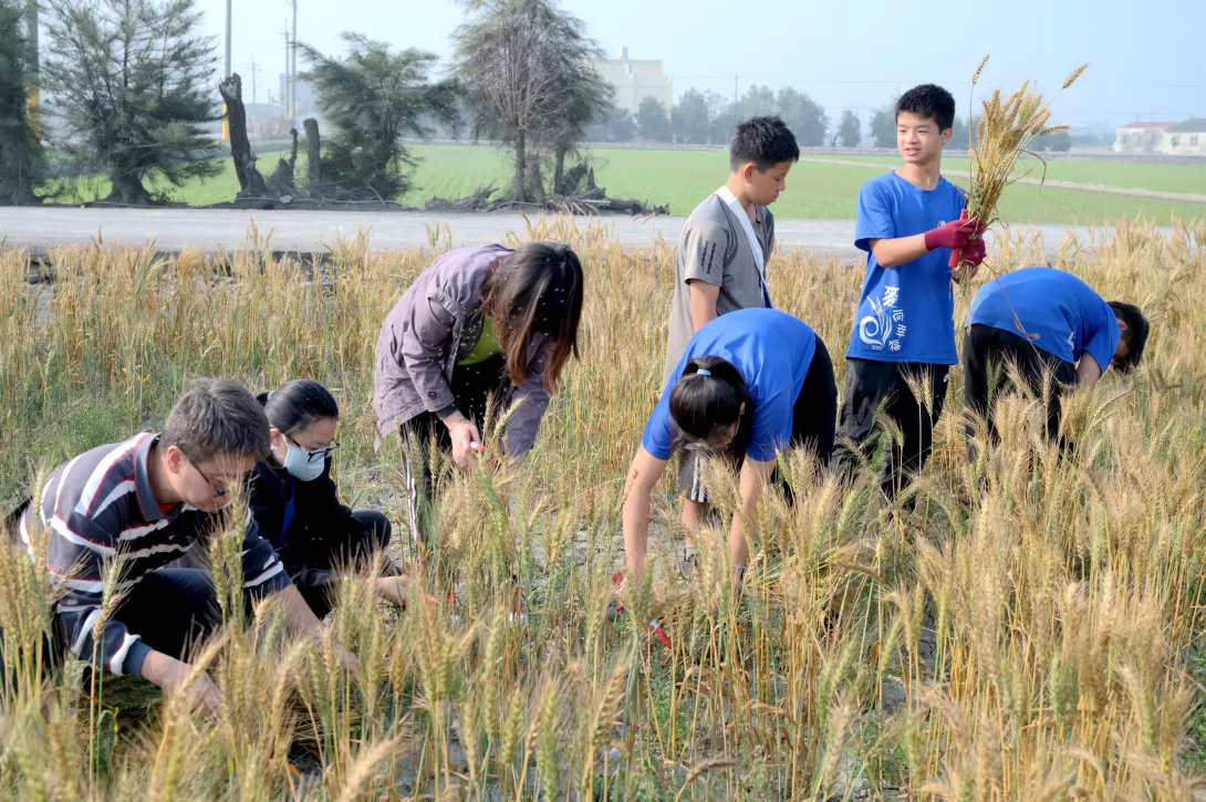 圖:潭墘國小同學小麥收割體驗課程