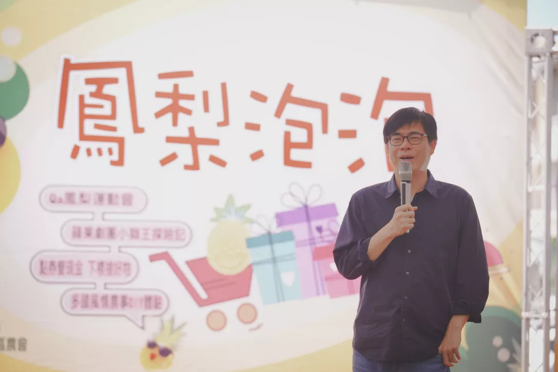 陳其邁致詞時也談到分散風險、增加通路以及增加農民收入的重要性,他也向大家報告鳳梨的市場價格,認為吃鳳梨有助台灣經濟,越吃越旺,力挺高雄鳳梨,更說他最愛吃大樹鳳梨冰,邀請大家一起吃冰消暑,也不忘提醒回家一定要帶上鳳梨,支持在地農產。
