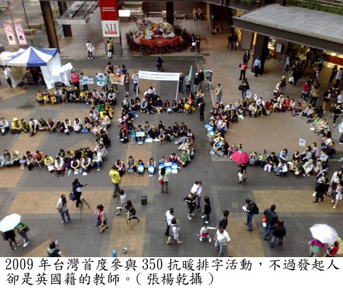 2009年10月24日,全球170多個國家、一天就有超過4000場遊行活動,召喚上百萬人走上街頭,排出「350」字樣,希望喚起世人對氣候變遷的危機意識。
