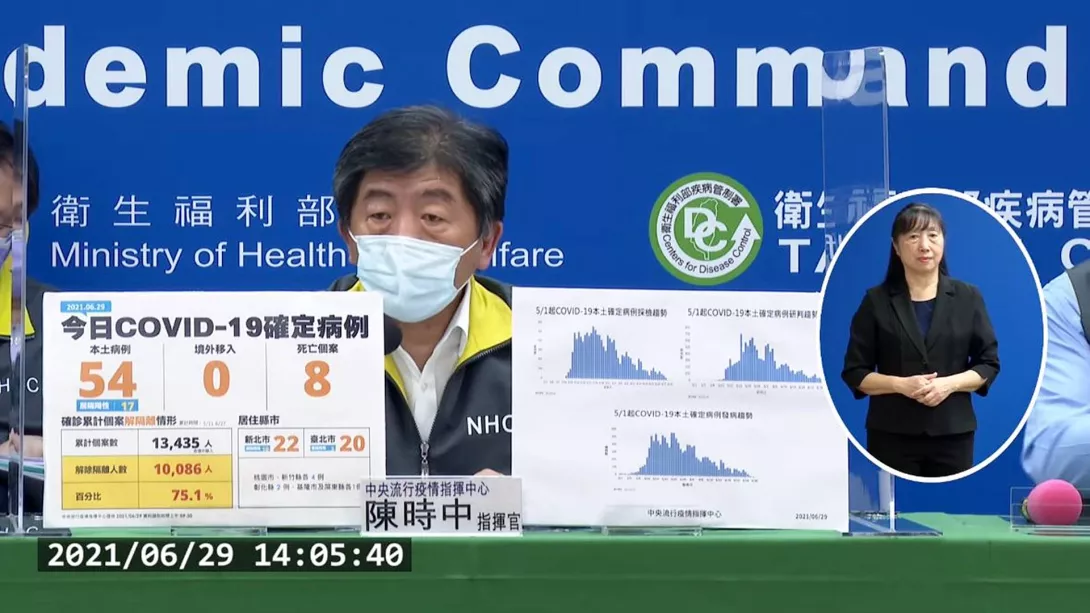 國內疫情6/29新增54本土確診 8人染疫病逝(畫面翻攝/中央流行疫情指揮中心嚴重特殊傳染性肺炎記者會)