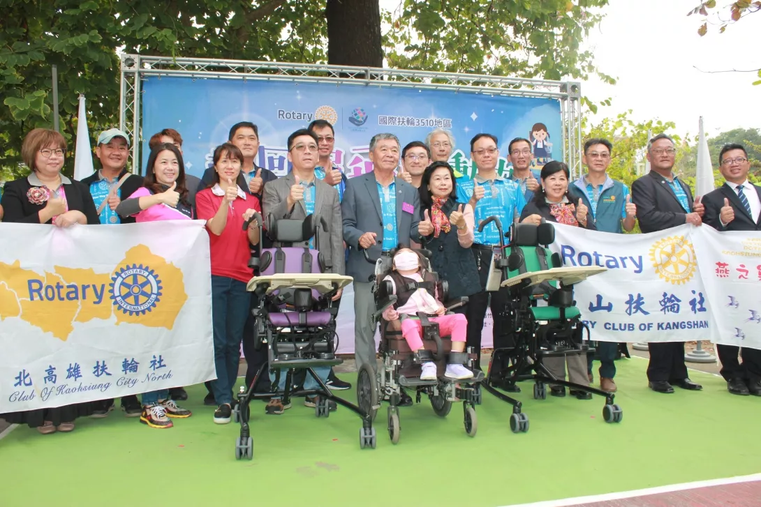 旗山早療中心自民國 87 年成立以來,每年服務超過300位發展遲緩兒童的家庭,然而23年來許多教學設備都已老舊,尤其是移動式輔具設備,維修費用相當高昂,中心內的學習椅皆已達使用年限,椅型號老舊,無零件可提供與維修。旗山東區扶輪社社長王國禎在第一時間知道需求,實地了解後,當下承諾捐贈兩台價值48.8萬的移動式兒童輔具「學習椅」,偕同11個友社蒞臨早療中心參訪,陪伴慢飛天使共度感恩節並舉辦捐贈儀式,由旗山早療中心主任許廷安代表接受學習椅,並致贈感謝狀。