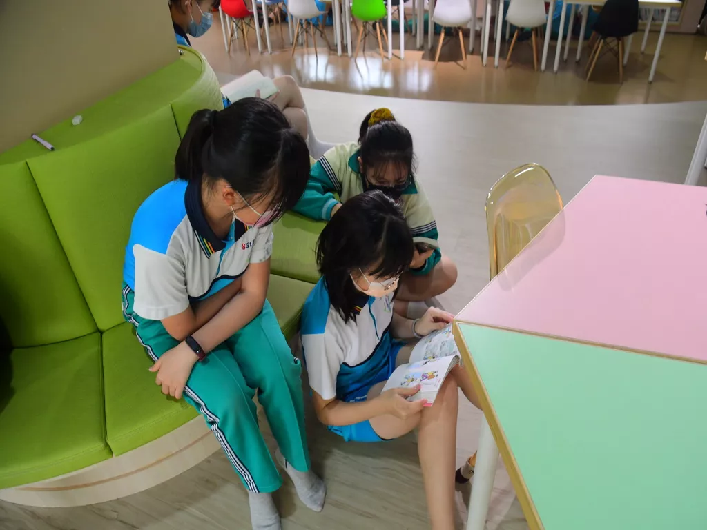 ▲將樓層的空區營造為舒適的閱覽區,李慶齡校長善用校內的每一空間。(圖/記者周厚賢攝)