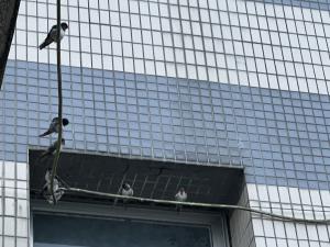 公車候車亭凌亂張貼的公告?公車站牌穿插在電線幹間?