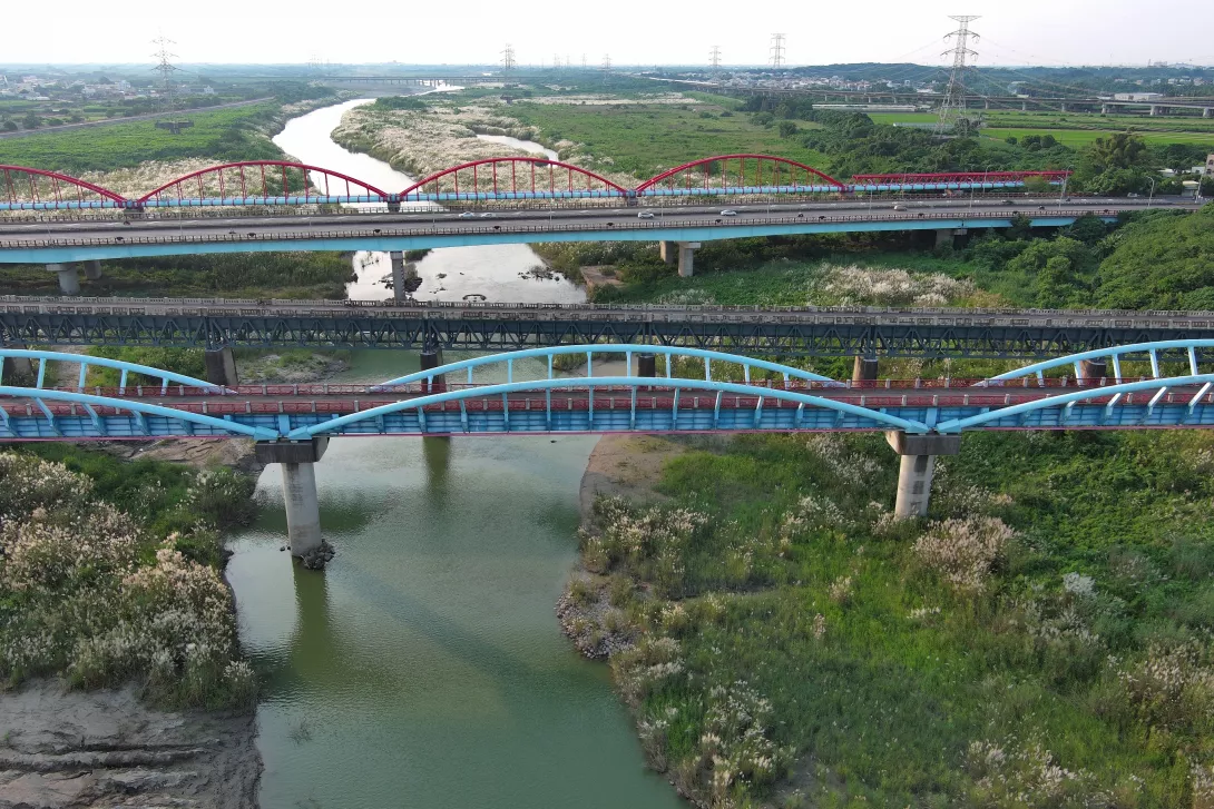 除了有保存百年前 舊的水路橋外 可以看到5條橋橫切過曾文溪的壯觀畫面