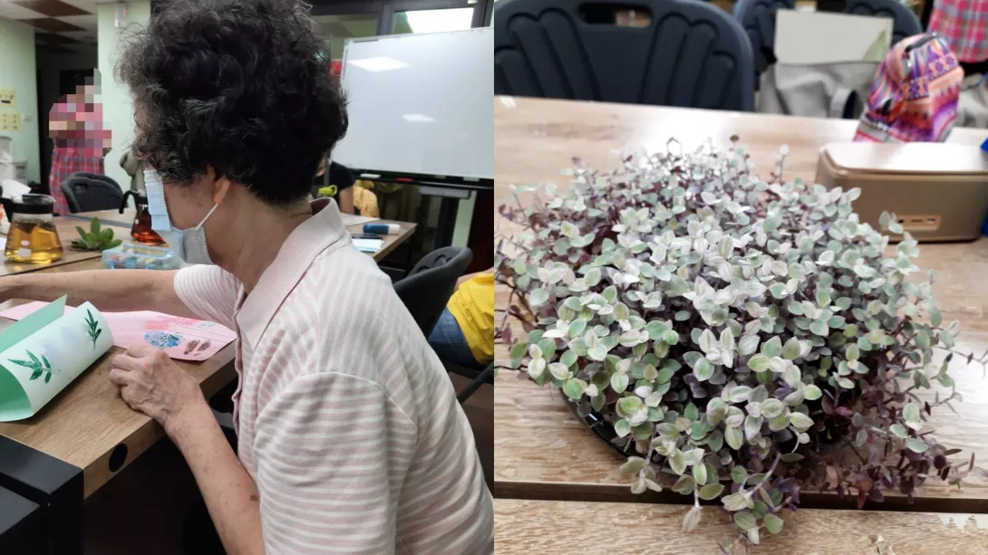 照片為吳奶奶上新北市家庭照顧者協會所開的植物盆栽課程