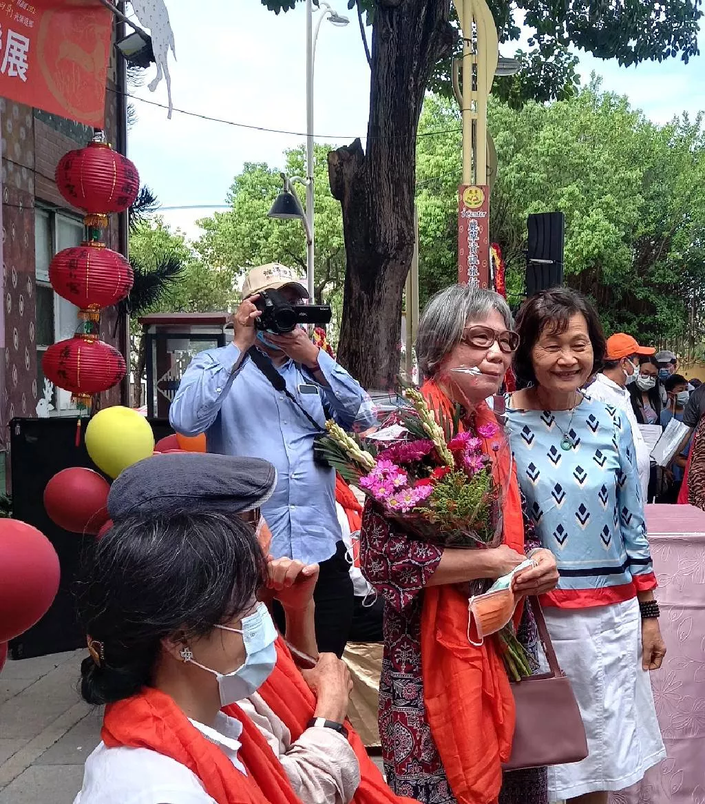 紅紅的地毯承載滿滿的敬意,小朋友們撒花灑出滿心歡喜。鹿草國小悠揚樂音演奏“望春風”台灣民謠組曲,牽引藝術家們愛鄉的心情。