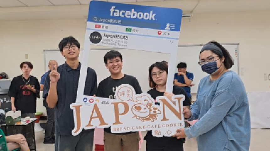 (圖四)公廣系畢製團隊「ㄝ府八」走訪森山市集,與吳寶春烘焙學院攤位合照