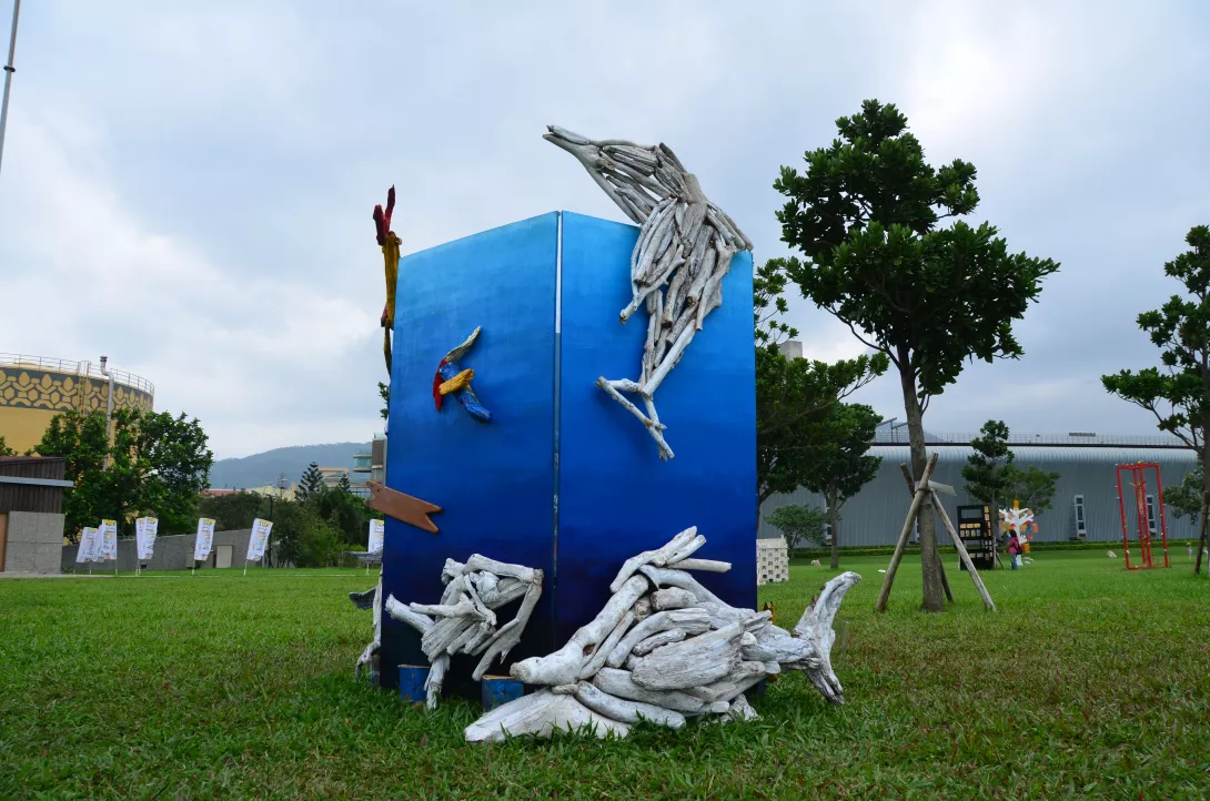 此次作品以長年颱風過後的漂流木為媒介