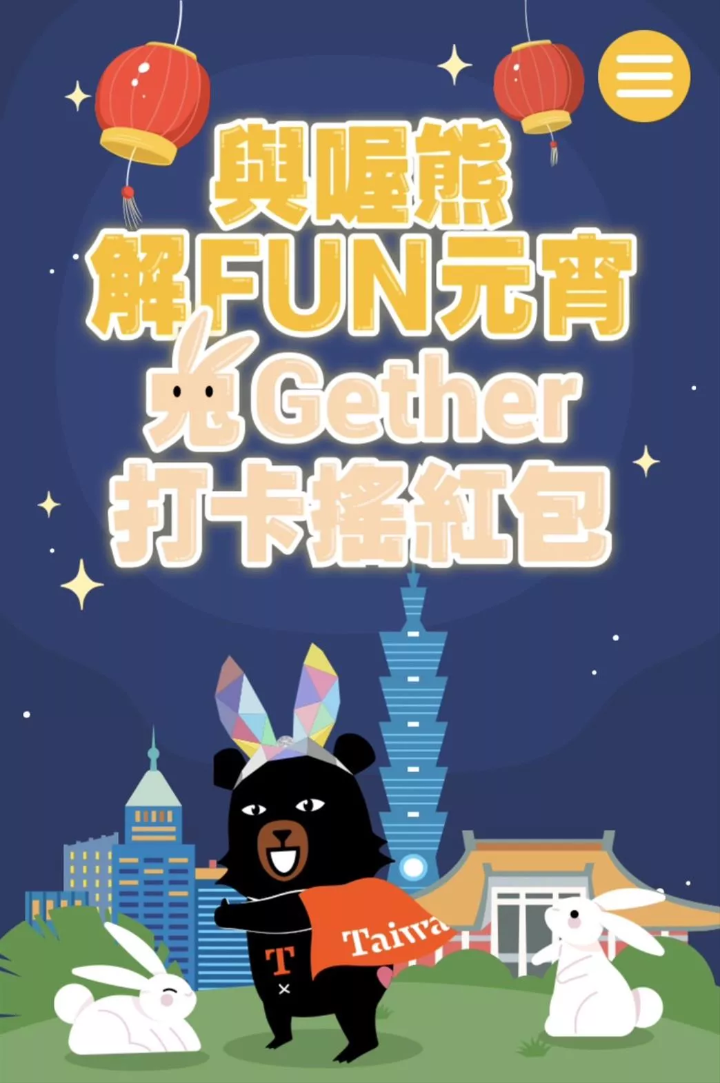 除了情人節系列實體活動外,於2月5日至19日燈會期間來到中央展區(國父紀念館及臺北市政府前廣場)賞燈,還可以參加「與喔熊解FUN元宵 兔gether打卡搖紅包」活動,民眾透過手機拍攝主燈「玉兔壯彩」、副燈「蟠龍獻瑞」、「從心出發」、「躍動未來」,以及前往六大主題燈區內指定燈藝作品,完成集點任務就可以猜燈謎、搖紅包、抽住宿券、超商禮券與LINE POINT點數,每日還有額外獲得隨機彩蛋好禮的機會喔!(活動網址:http://twlantern2023.tw)