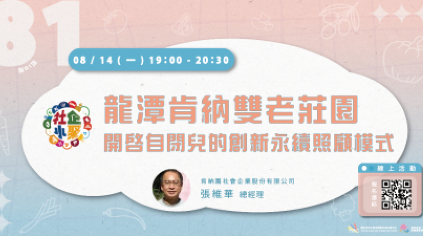 由國立中央大學尤努斯社會企業中心辦理,每場邀請一位社企創業家分享經營理念與創業的心路歷程,讓參與者深入了解社會企業如何透過永續經營的商業模式解決社會問題,並提供資源與人脈串聯的平台。