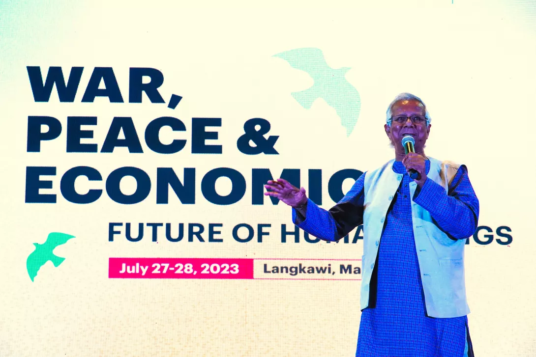 這次年會主題為:戰爭、和平&經濟:人類的未來(War, Peace and Economics: Future of Human Beings)。尤努斯教授於開幕發表和平演說提到,過去幾年受到疫情衝擊,社會貧富差距更加明顯,讓我們看見當今經濟體系的缺陷及需改善之處。除此之外,尤努斯教授也提到近幾年因國際戰爭的事件,導致更多人民陷入貧困當中,各國與其投入資源在製造毀滅性武器產生對立,更該思考如何以創新的方式創造和平的社會,希望藉由這次年會廣納各界想法,也呼籲大家應積極展開具體行動。本次開幕致詞貴賓包含東帝汶總統同時也是1996年諾貝爾和平獎得主Jose Ramos Horta、2024巴黎國際奧林匹克委員會主席Thomas Bach、法國巴黎市長Anne Hidalgo、巴西環境部長Marina Silva等重量級國際領袖。