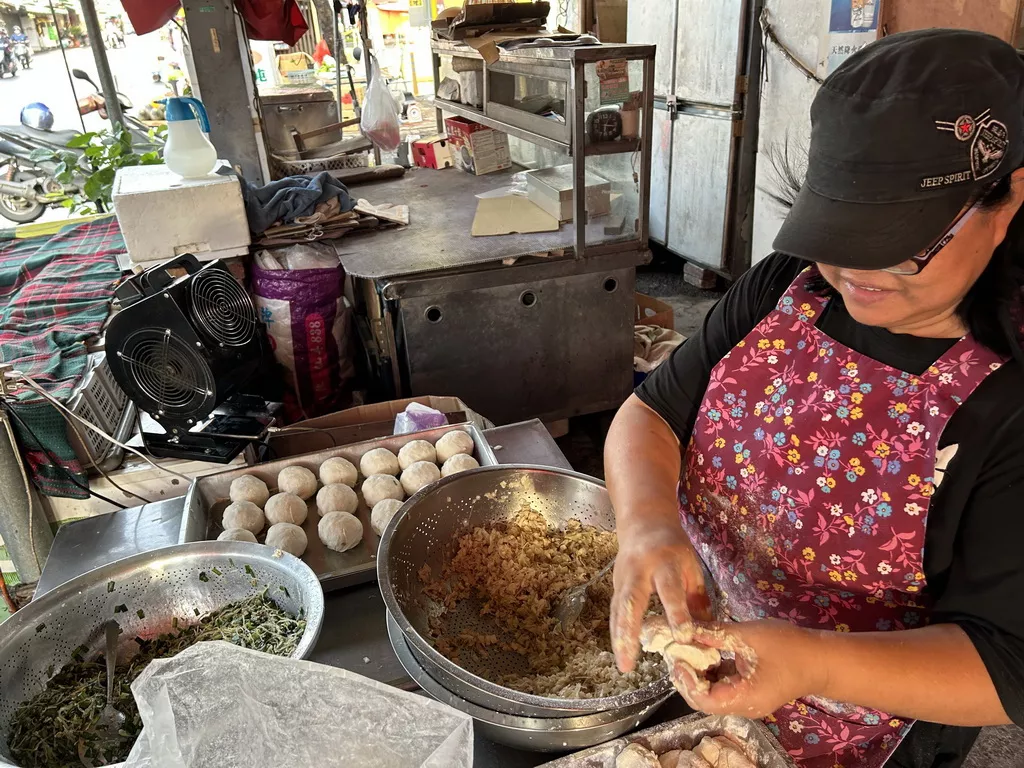 ▲老闆娘手中成型的水煎包,看的見的是皮薄、餡多、味飄香。(圖/記者周厚賢攝)