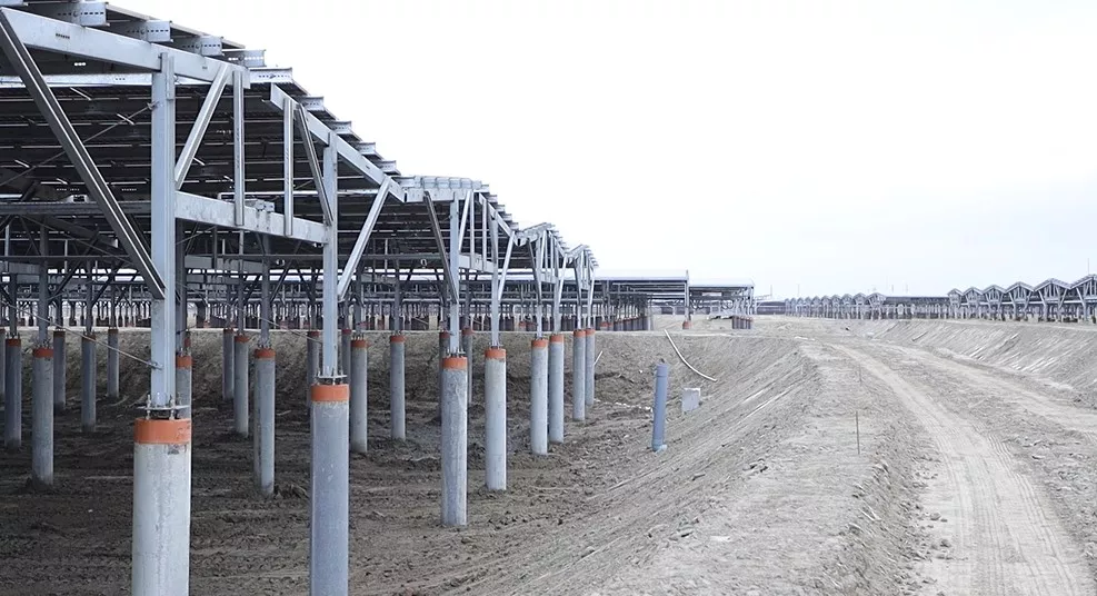 這是常見太陽能發電廠的蓋法 一支支立柱插在魚塭地
