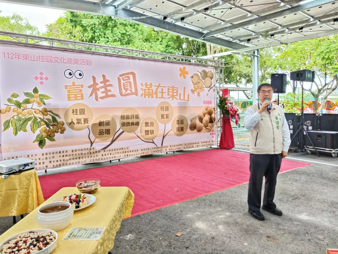 今年首度舉辦「富桂圓滿在東山-112年東山桂圓文化產業活動」今(15)日在臺南市東山區運動公園展開,由臺南市大家長黃偉哲市長及多位貴賓一同出席活動現場。
