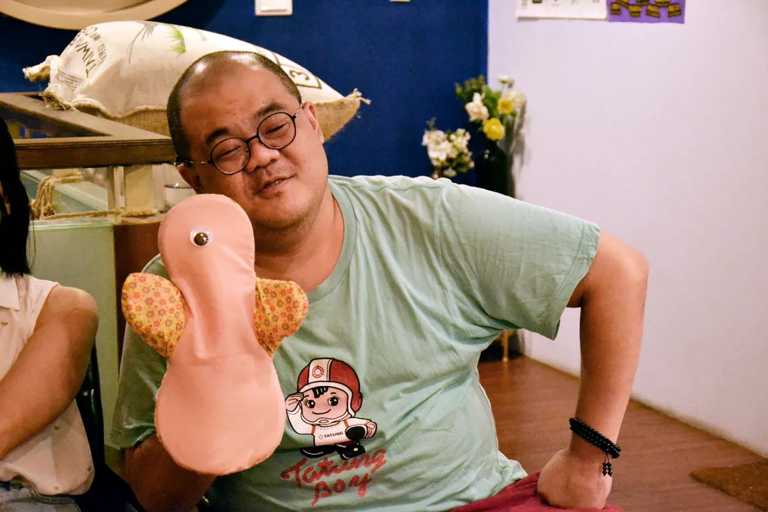 ↑PHi表演工作室講解布衛生棉偶的演出方式。攝影/陳富妤。