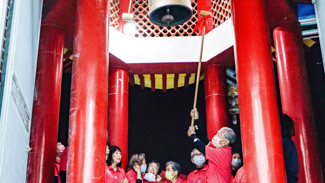 這場活動是配合台南市政府 選擇在子時11點15分的時候來敲鐘祈福