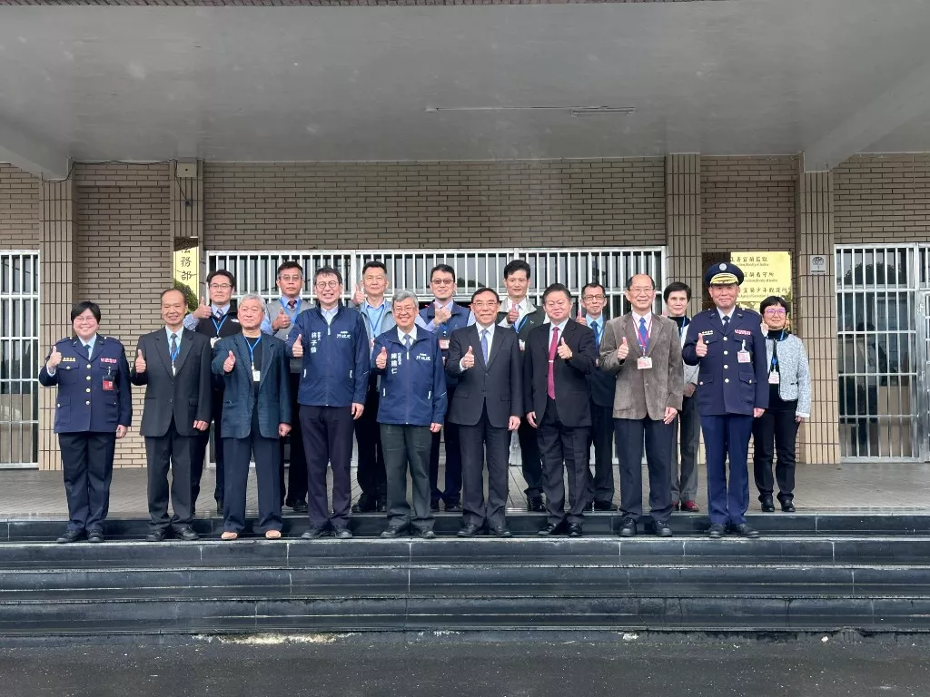 行政院院長陳建仁於2024年2月5日上午前往宜蘭監獄巡視,首先聽取典獄長許金標簡報宜蘭監獄業務概況;致詞結束後,院長致贈加菜金、水果禮盒及龍年賀歲福袋,由勤務指揮中心-中央臺林衛城主任代表受贈;隨後,院長與行政院發言人林子倫、法務部部長蔡清祥、矯正署署長周輝煌及典獄長許金標等人一同前往中央臺慰勉值勤同仁辛勞,感謝所有矯正機關同仁在春節期間堅守崗位照顧收容人,並秉持收容人能夠改過遷善的信念熱忱服務,使他們透過各項技訓課程習得一技之長,進而力求蛻變,重新復歸社會做出貢獻。院長強調,政府將持續建置更完善的獄政制度與環境,提升收容品質及監所安全,也請法務部與衛生福利部共同合作,積極推動矯正機關C型肝炎篩檢與治療計畫,使我國揮別C肝的威脅。離開宜蘭監獄前院長和矯正署同仁合影。
