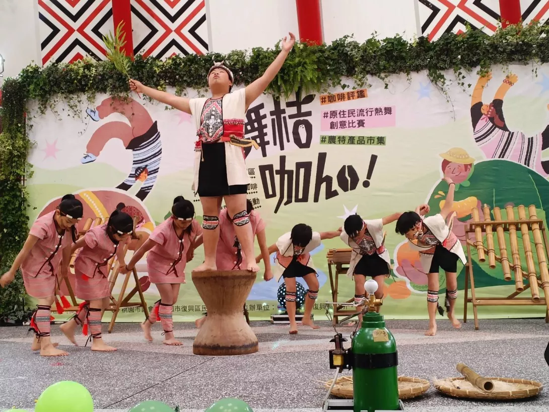 而今日除了上午8點就在公所6樓開始進行的咖啡評鑑比賽,舞桔咖ho第1屆原住民流行熱舞創意比賽,10點則在角板山天幕廣場由頭角藝術團以「擁抱世界擁抱你」原舞蹈熱鬧登場,同時還有復興區在地咖啡柑橘等農特產品市集在角板山公園展售,雖然比賽現場充滿了的緊張氛圍,但仍絲毫不減民眾上山來一起共襄盛舉的熱情。