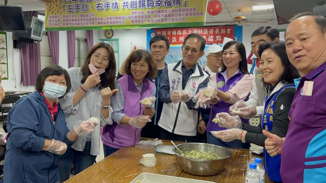 4月6日上湖社區舉辦左手心、右手情、共創楊梅幸福情啟航儀式,以愛心菜園與元寶餃子為主題拉開序幕。旗艦接棒儀式,象徵一棒接一棒,社區夥伴齊力包元寶餃子,為今年計畫包圓滿。