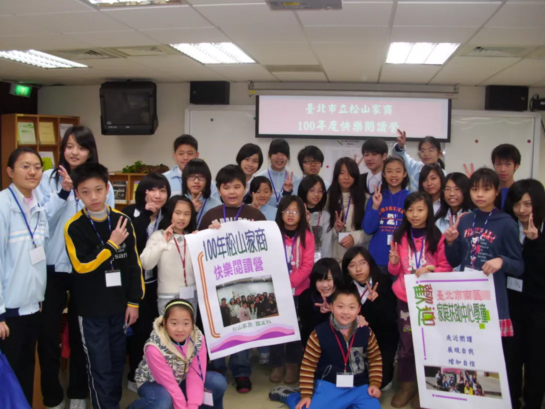 台北市松山家商服務推廣組組長李美娟老師表示,閱讀是有技巧的,只是許多人不知道技巧而對閱讀感到疲累,一但掌握技巧將會事半功倍,在課堂或學習上會有很大的助益,因此在學校舉辦至今一年的閱讀技巧訓練班,原本是為了提升校內學生對閱讀的興趣和能力,讓他們增加自信,但後來一個念頭想到,為何不把這樣好的方式推廣給一些無法參加補習、安親的一些經濟貧困的孩子呢?曾經是受家扶扶助的李美娟老師對此更是有感而發,因此將這樣的理念付諸實行,張耀中校長也相當認同,當天不僅前來鼓勵在場的孩子,還發放紅包給家扶兒預祝他們新年快樂!「閱讀快樂營」選讀書籍由博客來網路書店所提供,有品格類,如夢想前進的女孩,藝術類,如梵谷與向日葵,和長篇故事類,如挺身而出的小天使,主著重人物書寫訓練、景物書寫訓練和故事書寫訓練,同時也提出一個雙贏的理念,既然原本就有校內學生參加一年的閱讀訓練,何不讓學生擔任小小義工,將自己所學結合公益活動,讓雙方都有成長呢?就這樣,第一屆松山家商「閱讀快樂營」就誕生出來!