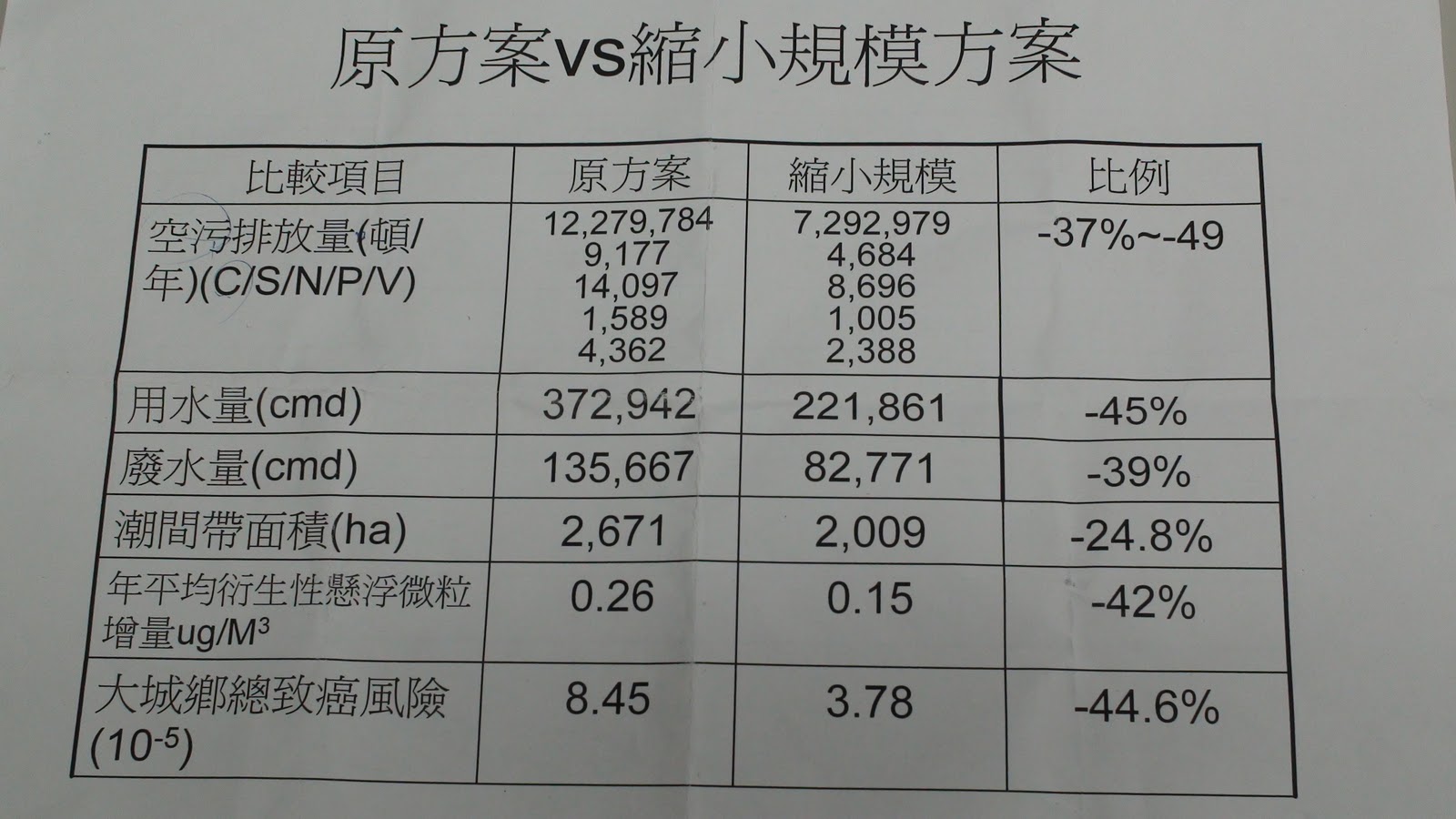環評委員凌永健計算,縮小規模方案總產能約是原方案的九成。