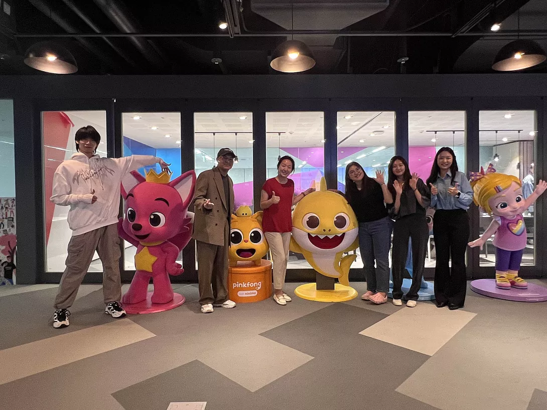 周明韻主任日前並與遊戲系林大晟教授帶領國際產學績優師生團隊,赴韓國參訪全球最知名點閱率超過150億的兒童音樂動畫Baby Shark製作公司Pinkfong、藝術設計領域享有盛名的弘益大學、被譽為「SKY大學」之一的高麗大學研討交流,並與歷史悠久的德成女子大學科學技術學院合作辦理2025年國際IT創新科技研討會。期望能透過企業產學合作與國際培訓課程,精進學校在3D運算專業技術、半導體、互動混合實境技術等領域發展。