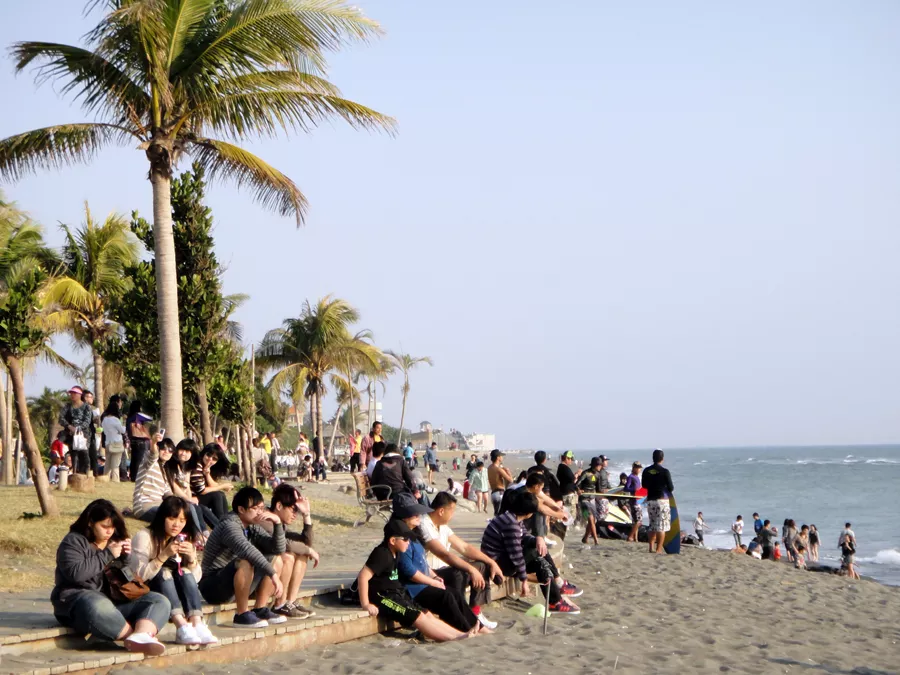 看年輕人在沖浪。隔天搭船欣賞海面風景到小琉球,