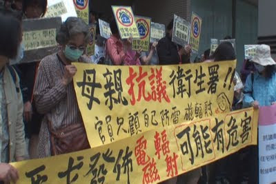母親節前夕,近百位母親今(5)日到台北市衛生署抗議,官員自己擔心電磁波危害,用人民納稅錢做防護設施把電磁波值降到2毫高斯,但卻以環保署公告的環境建議值833毫高斯,來誤導民眾833毫高斯是安全值,相差400倍。