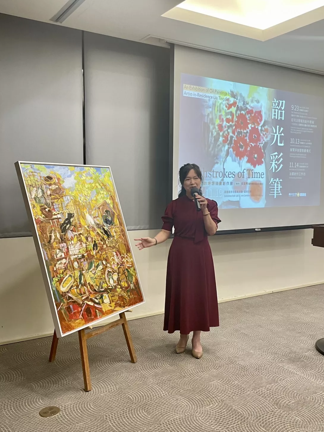 在畫布裡尋找幸福與熱情,讓瞬間化為永恆。國立中正大學圖書館自 9 月 8 日至 11 月 19 日,推出【韶光彩筆--駐校藝術家劉婷瑟油畫創作展】。13日舉行隆重的開幕茶會。開幕貴賓雲集,上百位嘉賓與會並欣賞畫作,為美麗校園憑添藝文風采。