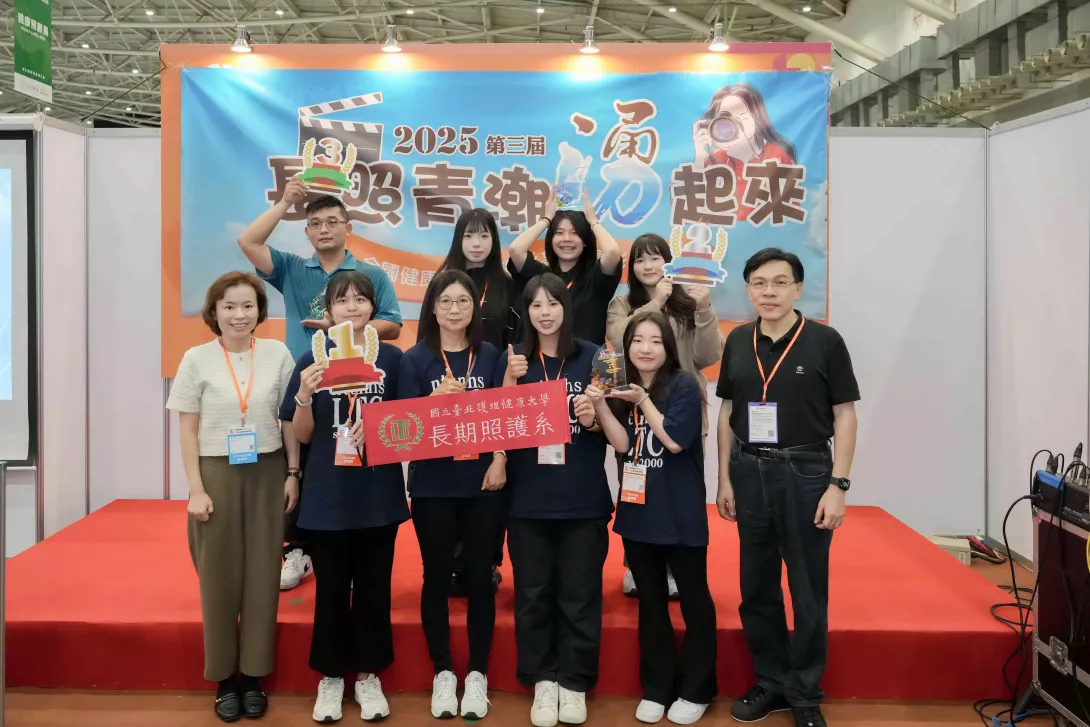 教育部國民及學前教育署攜手國立臺北護理健康大學長期推動青年投入長照教育及照顧服務,今(114)年9月26日上午在南港展覽館舉行「2025第三屆長照青潮湧起來~全國健康照護服務形象創意影片競賽」頒獎典禮。本次競賽計有24支隊伍報名參賽,分別來自全國北中南及離島地區,經過資格審查、專業評選、網路票選後產生12組團隊入圍。現場齊聚教育部、衛福部長官、產學界專家評審、各組入圍隊伍與長照相關領域人士,共同見證青年世代以影像創作展現健康照護服務的專業與溫度,翻轉大眾對長照的刻板印象。
