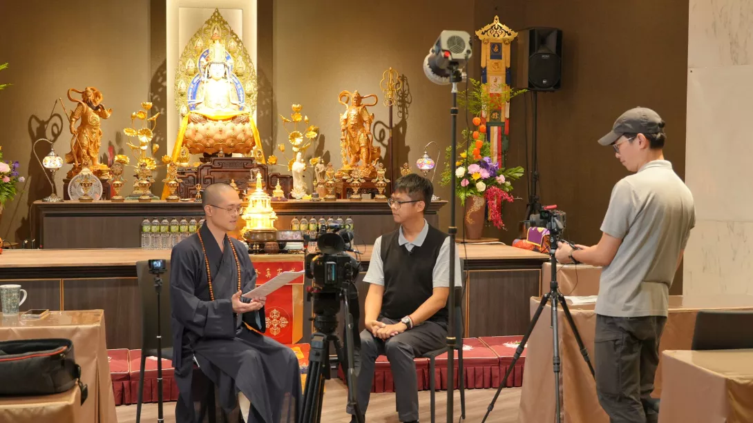 見睹法師接受電視台專訪~談用佛教音樂來弘法的心路歷程    圖片來源:栴曇精舍見睹法師