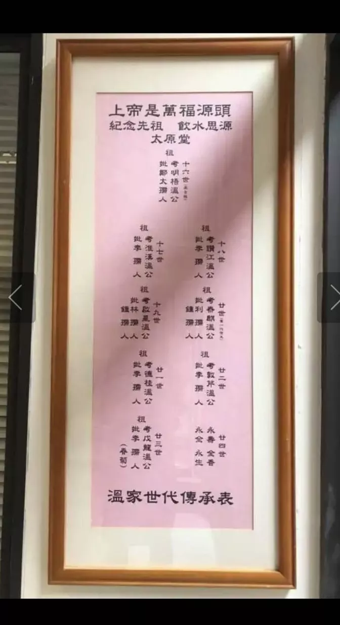 ▲溫家祖先紀念表,翻攝自客家福音協會。